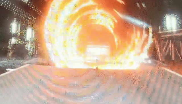 穿越兩組火圈,共25個(gè)火圈(6+19),內(nèi)焰溫度高達(dá)800攝氏度。